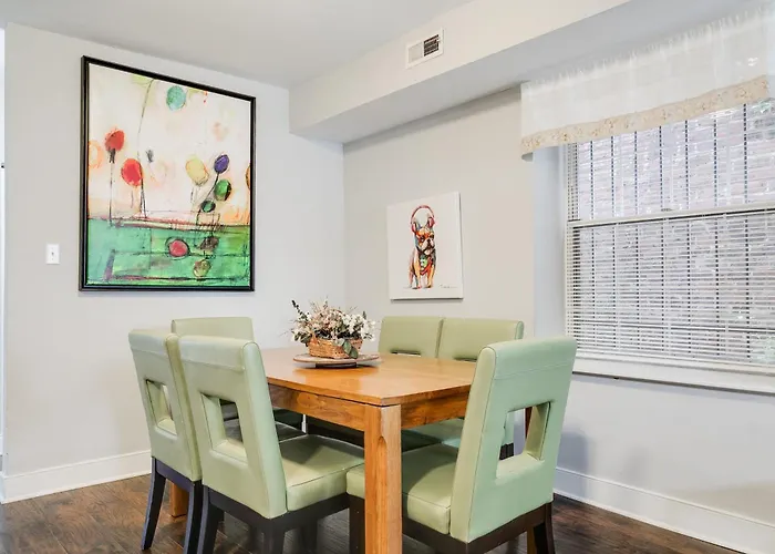 Eine komplette Küche bietet Gästen eine Mikrowelle, eine Kaffee-/Teemaschine und einen Kühlschrank. Verbringen Sie einen schönen Abend in den nächstgelegenen Restaurants Mean Bird und Rowland, die in unmittelbarer Nähe von der Villa ist. Die Bushaltestelle Cary & Addison befindet sich ganz nah an der Cozy Spacious Family Home Near Carytown Fully Fenced und bietet alternative Transportmöglichkeiten in der Umgebung.